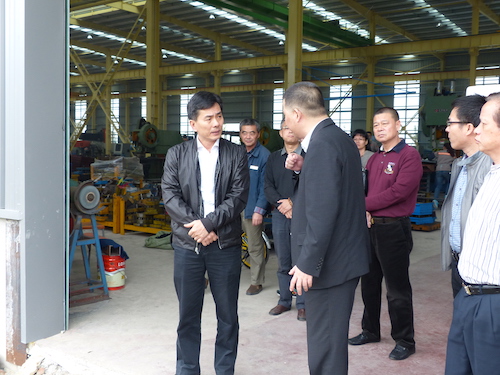在康柏集團總經(jīng)理陳建發(fā)引導(dǎo)下領(lǐng)導(dǎo)們一行來到了新落成的生產(chǎn)車間,對我司的產(chǎn)品生產(chǎn)線及生產(chǎn)工藝進行視察。